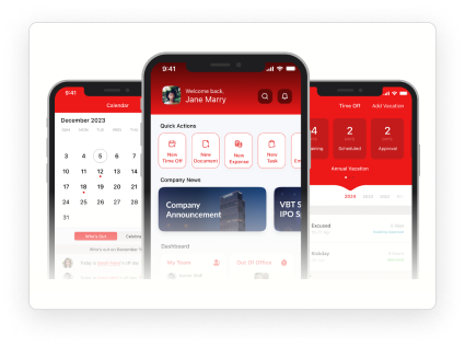 - Submit time off requests and track leave benefits